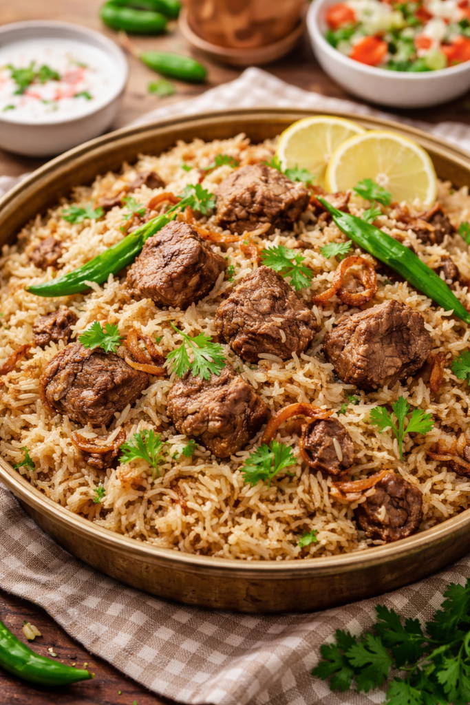 Beef pulao ko raita, salad aur kachumber ke sath serve karain. Daawat ho ya family dinner, ye recipe sab ko pasand aati hai.